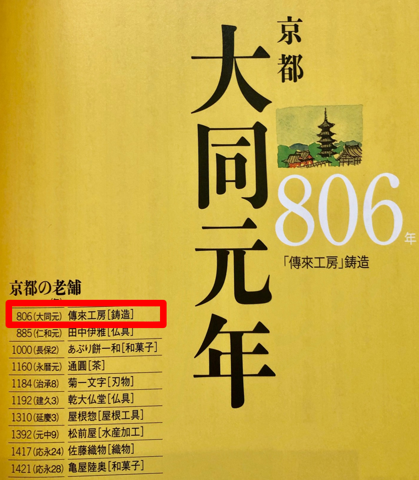 創業は西暦806年、日本の老舗として8番目に歴史ある企業、京都の老舗では最も歴史ある企業として紹介いただいています。 ※和樂(小学館様発行 2014年7月号)にて掲載