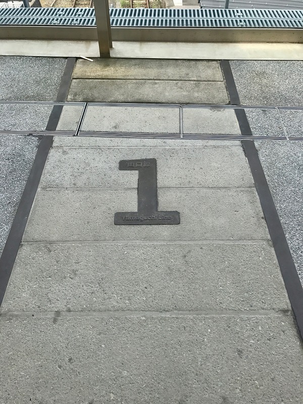 通路床に下を走る線路とホーム番号等をブロンズ鋳物にて製作し、象嵌のようにはめ込んでいます