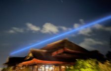 夜空に向かって放たれる幻想的な青い一筋の光は観音さまの慈悲を表すとか。